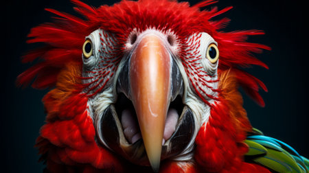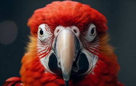 Portrait of a red macaw parrot on a dark background