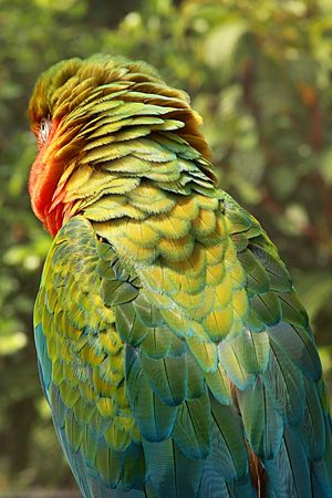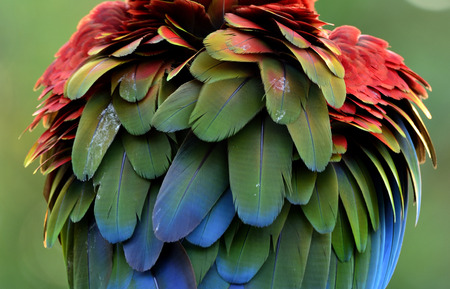 beautiful Green-winged Macaw (Ara chloropterus) back feather
