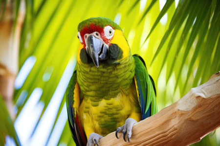 Colorful parrot is sitting in summer sunny day on a branch of tree