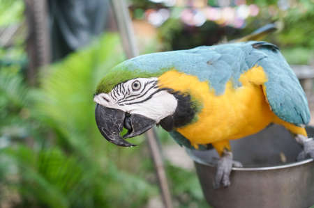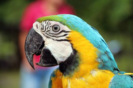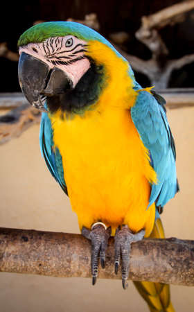the yellow and blue Macaw parrot in the nature in Cartagena, Colombia