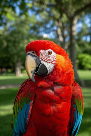 portrait of a red parrot in a zoo