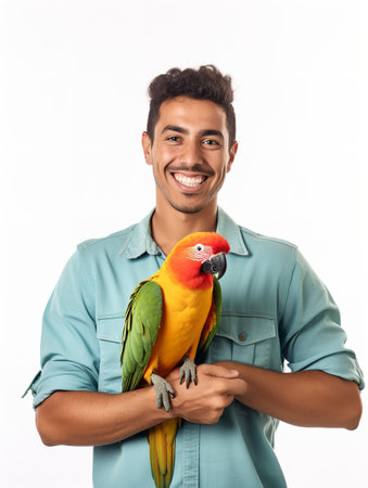 Closeup Sun Conure Parrot Perched on Branch Isolated on Background