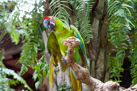 Red green bright parrot in Puerto de la Cruz, Santa Cruz de Tenerife,Tenerife, Canarian Islands.