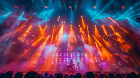 Band performing live music under vibrant stage lights, creating an electrifying atmosphere during an unforgettable concert event