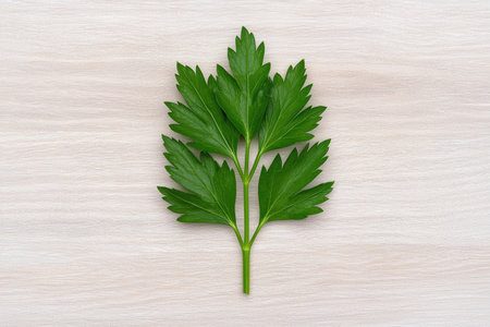 AI Generated. Fresh green parsley sprig with vibrant leaves on yellow background