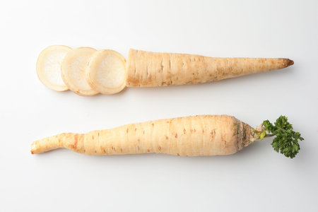 raw parsley root and its slices isolated on white