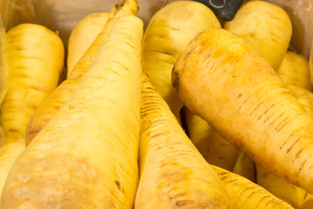 Close Up of Parsnip Vegetable Background on Market Stall