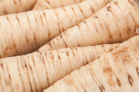 Raw fresh organic parsley roots on the market