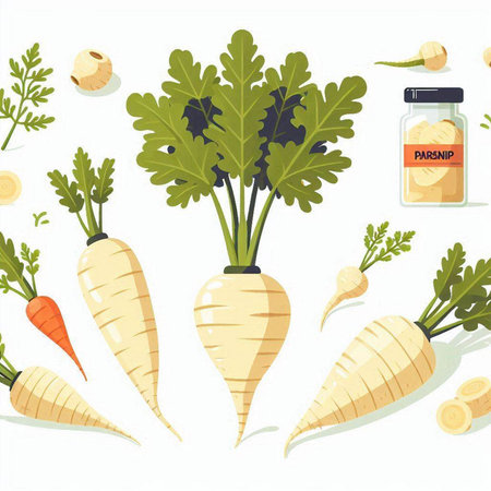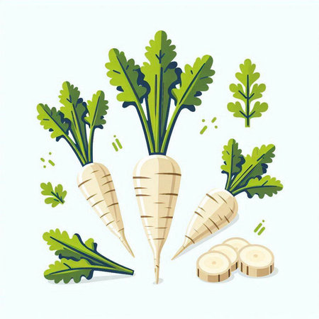 Parsnip and parsley on white background. Vector illustration.