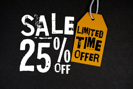 Sale 25% Off and Limited Time offer with Price Tag on black background