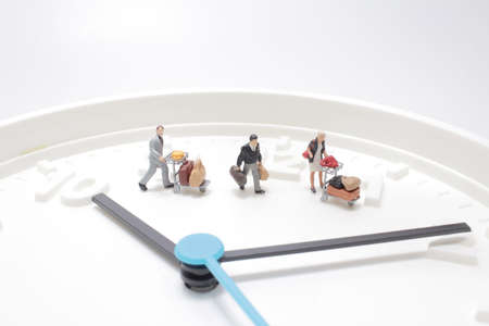 Miniature people : business man looking at watch and walk on the clock background, time business concept.