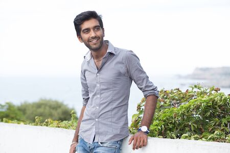 Indian student ready to go to class, back to the university concept. Handsome man smiling at camera