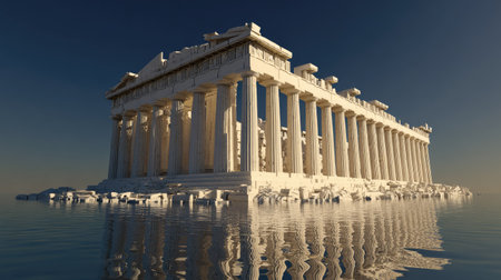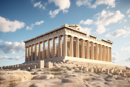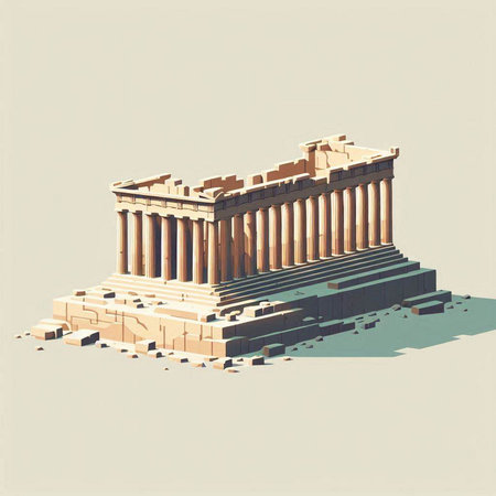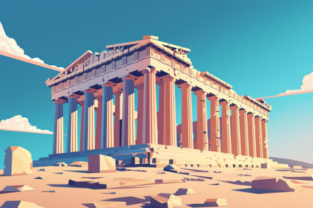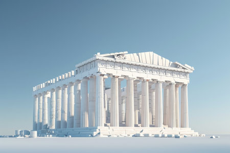 A realistic 3D representation of the iconic Parthenon in Greece with intricate details and historical accuracy, Illustrate the grandeur of the Parthenon through a minimalist aesthetic