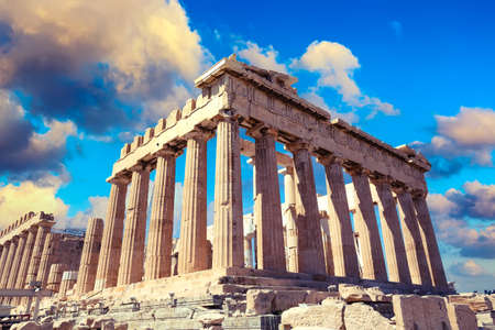 Ancient architecture, Acropolis under day sky with cloud. Athens, Greece.