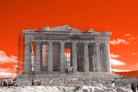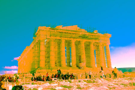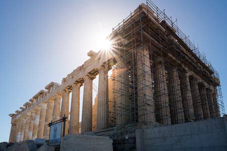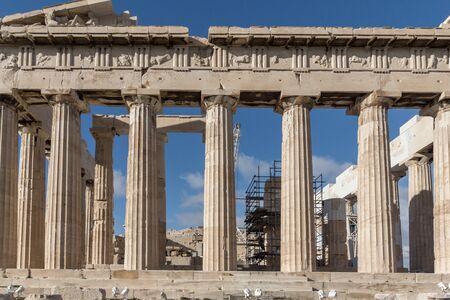 Facade of the Parthenon of the Acropolis of Athens, Greece