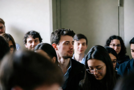 Multiethnic group of university students in lecture hall