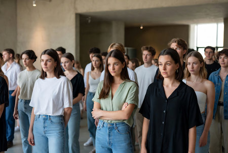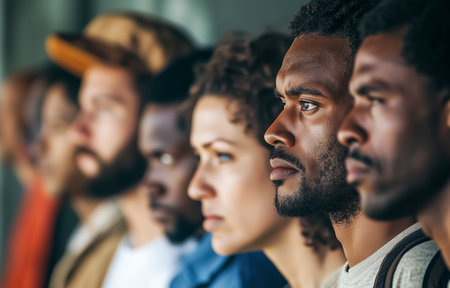 A captivating image showcasing a group of diverse young adults standing together, representing a mix of different ethnic backgrounds, emphasizing unity and modern diversity.