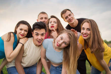 Group of happy young people laughing, outdoors