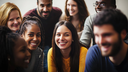 Global smiles: capturing joy in group selfies of cheerful and happy young people diverse nationalities, celebrating unity, friendship, cultural harmony in shared moments of happiness and togetherness