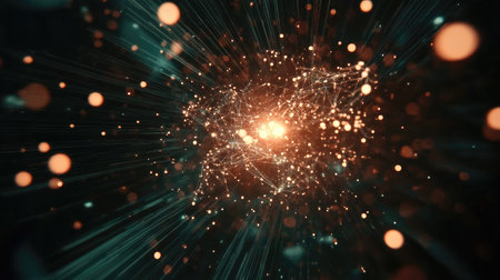A mesmerizing display of abstract particles radiating from a central point in a softly blurred background, capturing a sense of motion. Generative AI
