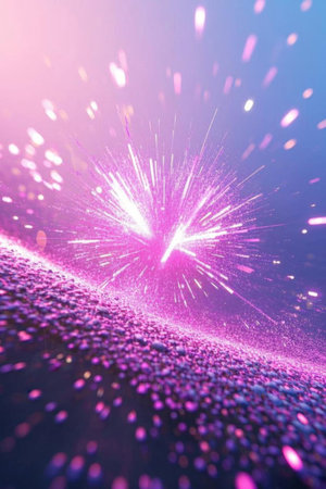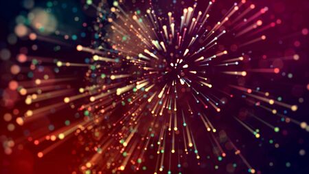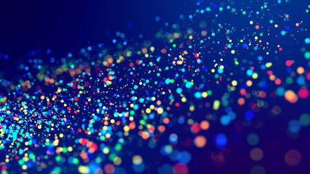 3d abstract beautiful background with colorful glowing particles, depth of field and bokeh effect. Abstract explosion of multicolored shiny particles or light rays like laser show.