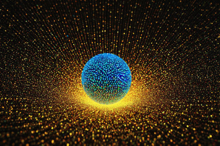 A holographic ping pong ball, made of many particles. Generative AI.