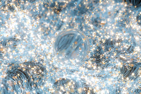 Abstract blue and golden sparkling bubbles. Holiday background. Digital fractal art. 3d rendering.
