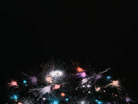 Shiny natural fireworks on dark sky background with little smoke