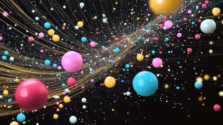 3D rendering of colorful particles in space. Futuristic background with bokeh effect.