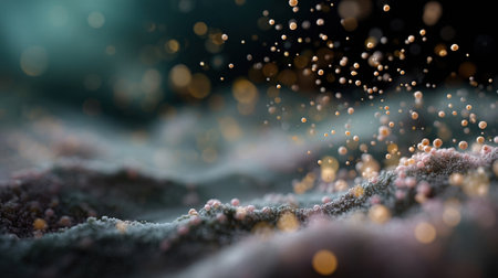 This image features a captivating array of sparkling orbs set against a deep, dark background. The orbs emit a radiant glow, creating a sense of depth and mystery. The interplay of light and shadow adds to the ethereal quality of the scene.