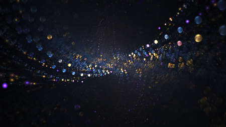 Abstract colorful digital particles wave with bokeh and light background, 3d render wave line dot background, line wave light glowing effect particular background.