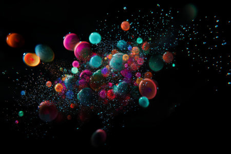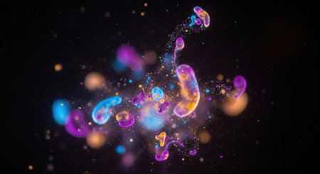 Abstract futuristic 3d render of colorful microscopic bacteria and particles floating in a vibrant scientific style