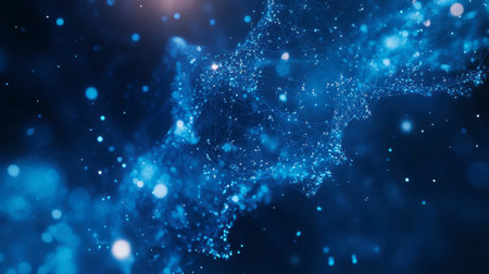 Abstract background with the movement of luminous particles. Digital technology connection concept.