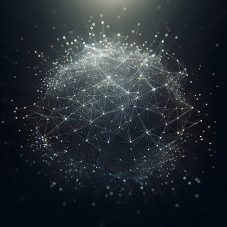 High-tech network visualization with floating particles, futuristic digital interface