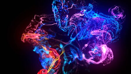 3d abstract beautiful background with colorful glowing particles, depth of field and bokeh effect. Abstract explosion of multicolored shiny particles or light rays like laser show.