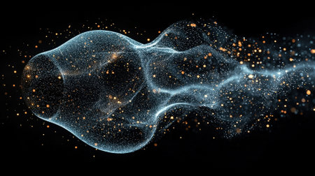 This abstract image showcases a glowing wave of particles shimmering against a dark background, evoking a sense of beauty and fluidity in digital art.