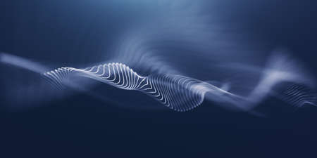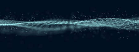 Abstract sound wave web banner. Artificial intelligence expressed by moving particles. 3D