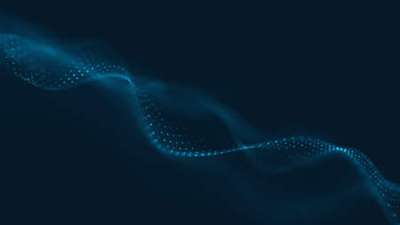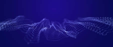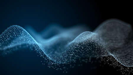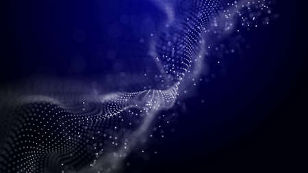 Blue digital dynamic wave. Future technology illustration. Abstract background with dots moving in space. 3d rendering