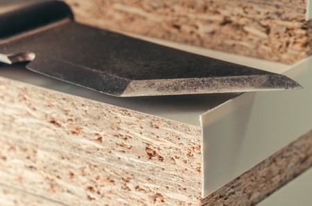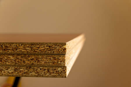 Close up of MDF board or plank for kind of furniture, woodwork concept