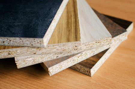 A collection of laminated wood panels showcasing various textures and colors, ideal for interior design, furniture crafting, and home renovation projects.