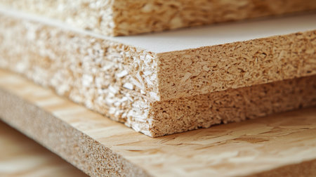 particle board design sits elegantly on a simple white background, showcasing a minimalist illustration that highlights the beauty of this engineered wood product, perfect for furniture making, diy projects, and home decor, emphasizing its versatility and eco-friendly features. ai generated