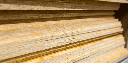 close up pressed wooden panel background, seamless texture of oriented strand board - OSB wood