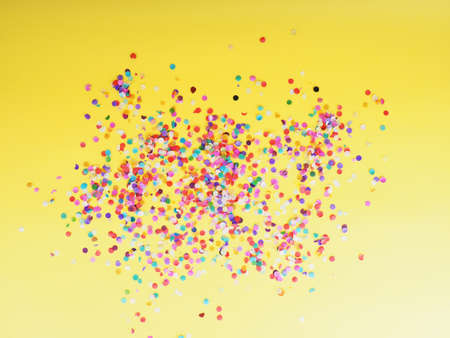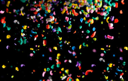 Colorful confetti dances in the air against a dark background creating a joyful atmosphere