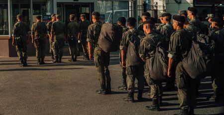 Novokuznetsk, Russia - June 24, 2020: Victory parade. Victory Day in the Great Patriotic War. Celebrating the victory over fascism. People in a military uniform getting ready for the parade