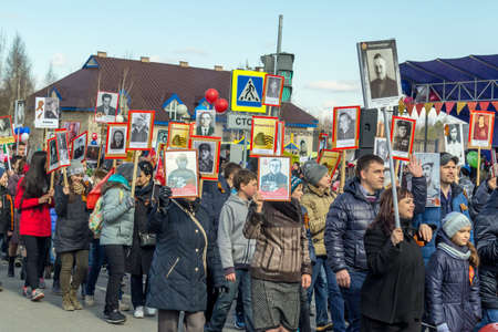 Demonstration of citizens of the city of Nefteyugansk ninth of May in the Victory Day over Nazi invaders. People came out on the main street of the city with photos of relatives who died during the Second World War, but living in their hearts.