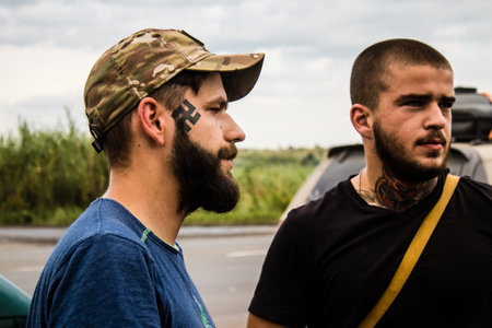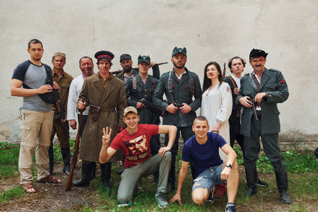 TERNOPIL, UKRAINE - June 2020 UPA Ukrainian Insurgent Army movie filming. Pictures of backstage. Actors posing for the camera