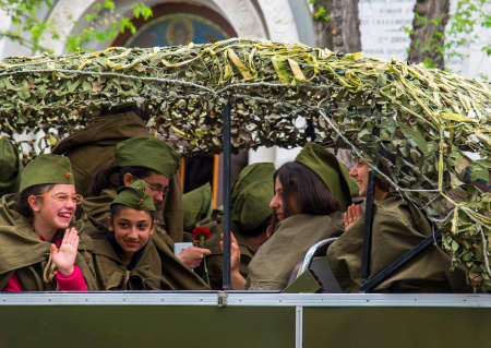 SEVASTOPOL / CRIMEA - MAY 09, 2017: Parade on the Victory Day with the participation of schoolchildren