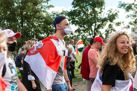 Minsk / Belarus, September 16, 2020: Protest against Lukashenko winning on president elections. Crowd of people on meeting. Peaceful protest in Belarus