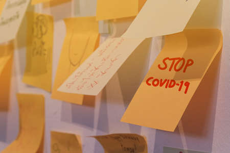 Sticky notes board in office. Many different colorful paper stickers pinned on wall. Memory notes for business planning. Created with Generative AI