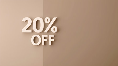 White '20% OFF' Promotional Sign on a Light Brown Background with Copy Space